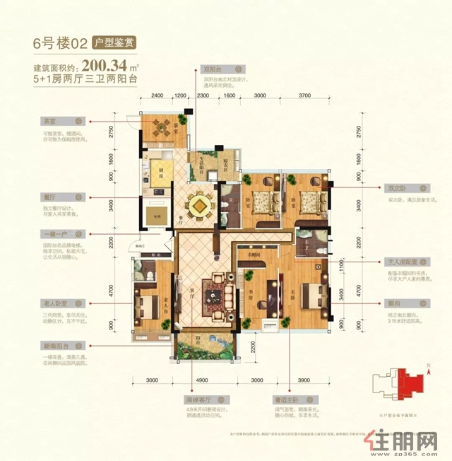 阔尺楼间距,挑高层空间,全明采光
