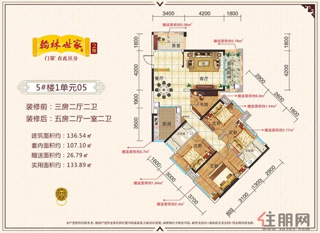 { 136㎡ (建面) 4+1房 }
